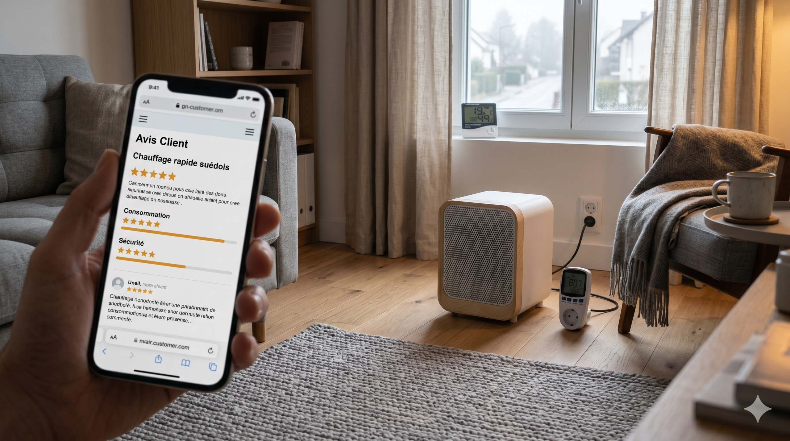 Vu de loin, cet appareil ressemble à un petit accessoire de prise électrique. Il se présente comme un chauffage d’appoint compact, censé produire de la chaleur rapidement et à faible coût. La mention "suédois" dans son nom est avant tout un argument marketing. Elle évoque la Scandinavie, ses hivers rigoureux et son ingénierie réputée. En réalité, les clients ne trouvent aucune trace de cette origine dans les caractéristiques techniques du produit.