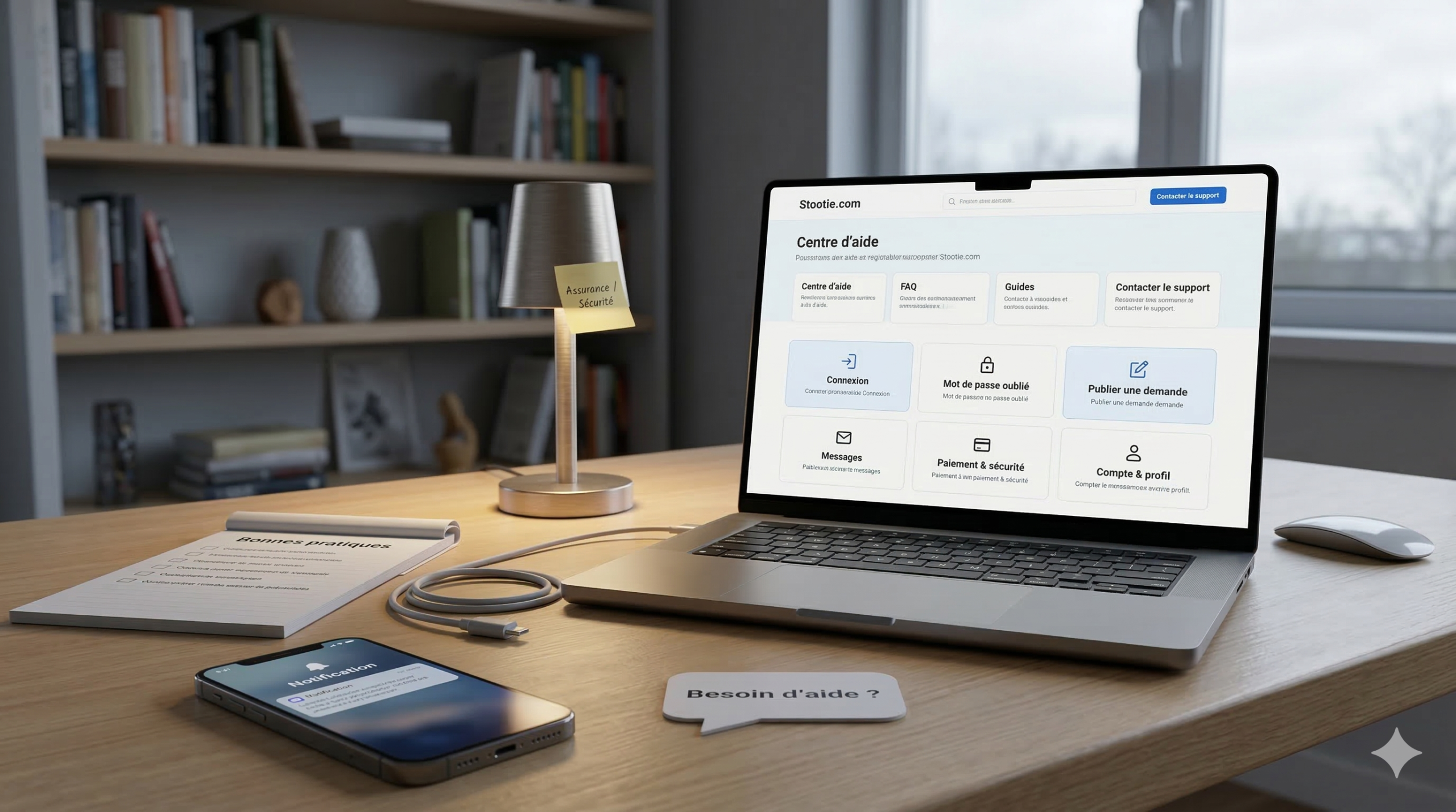 Vous trouvez rapidement une réponse à la plupart de vos soucis sur Stootie grâce au centre d’aide intégré, accessible sans contacter le support. Que vous soyez bloqué sur votre connexion, sur la publication d’une annonce ou sur un paiement, la plateforme propose des ressources concrètes pour chaque situation.