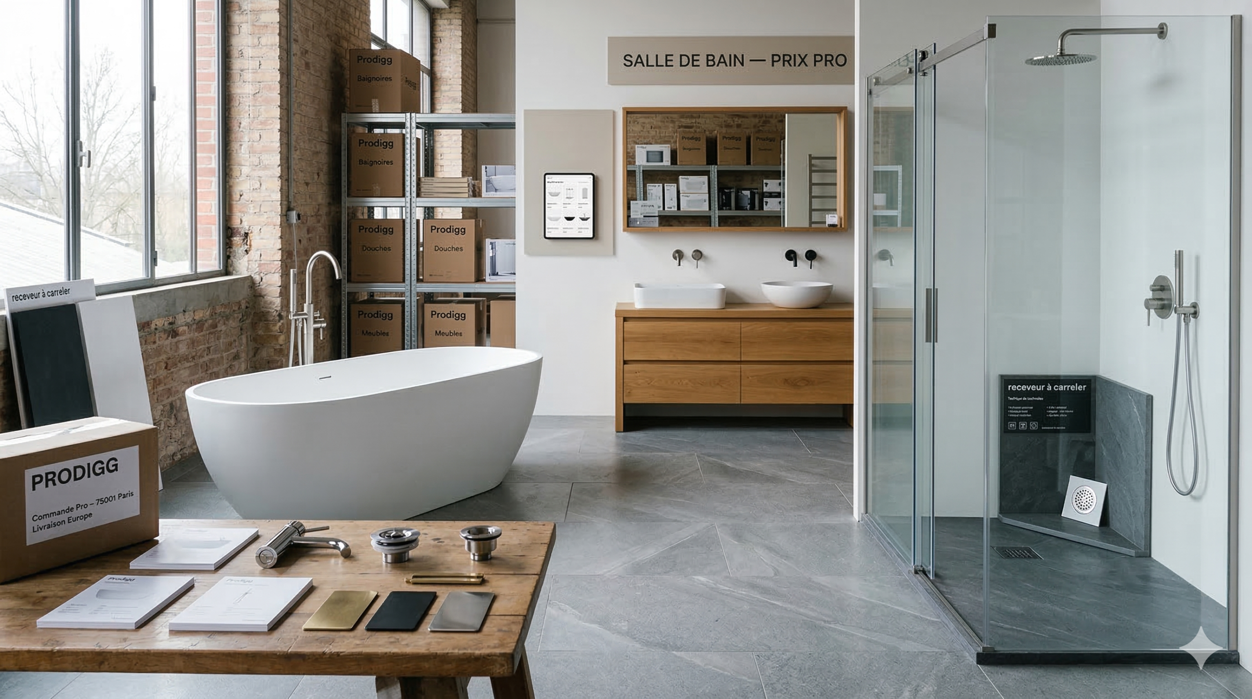 Prodigg est un distributeur en ligne spécialisé dans l’équipement de salle de bain, qui propose un catalogue de plus de 500 références allant du style classique au design contemporain. Basée à Paris (16 rue du Louvre, 75001), cette enseigne s’est construite autour d’une promesse claire : rendre accessibles des produits de qualité à des tarifs compétitifs, notamment pour les professionnels de l’aménagement intérieur.